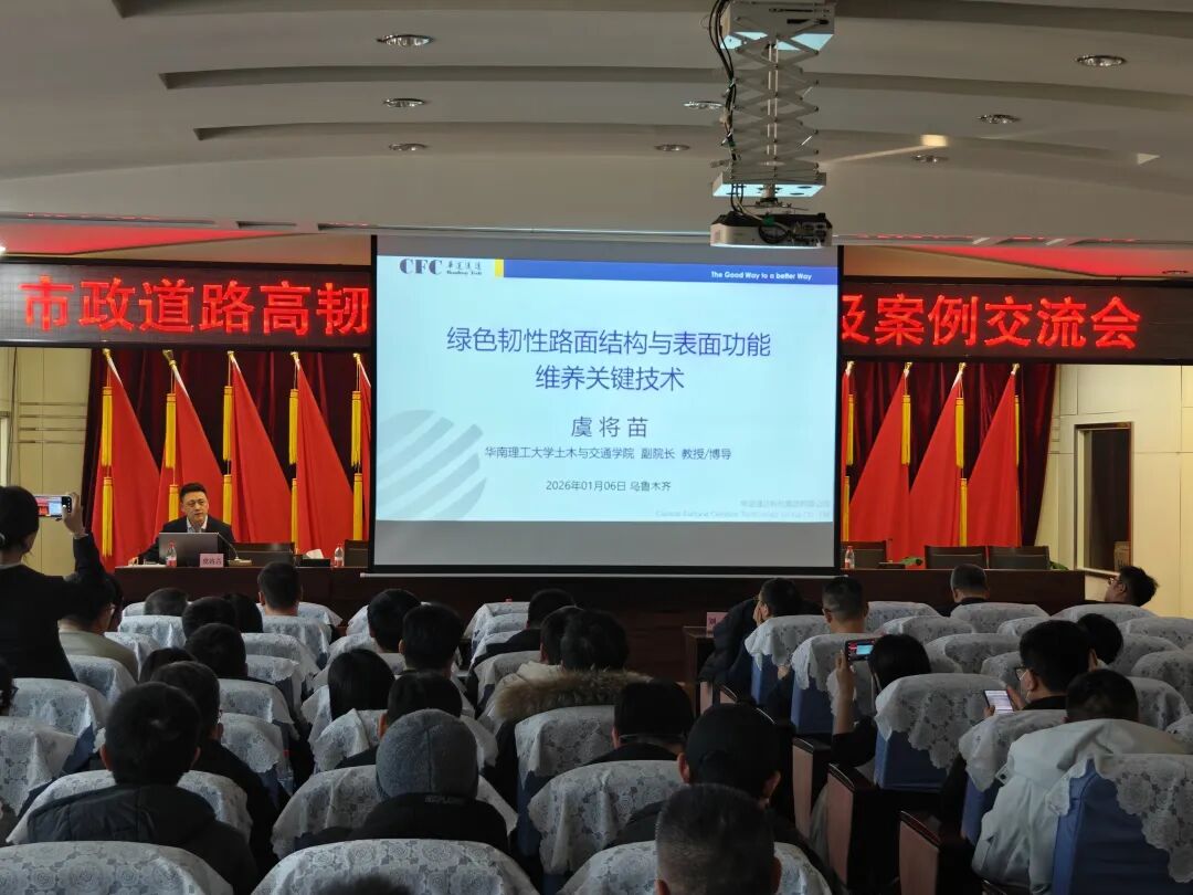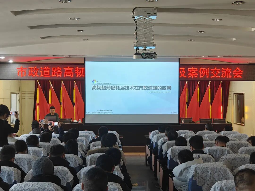 为促进新材料、新技术在市政基础设施更新中的推广应用,提升行业专业技术水平。2026年1月6日下午,一场聚焦高韧超薄磨耗层技术的专业交流会在乌鲁木齐成功召开。本次会议旨在总结介绍2025年乌鲁木齐市市政道路改造中运用新材料、新技术的实践经验,特别是在河滩快速路、会展片区等路段应用中已取得的降噪、抗裂、耐久性提升等显著成效,通过技术交流推动该新材料、新技术在乌鲁木齐更科学、更广泛地应用,为城市路网升级与市民出行体验改善注入持续动能。